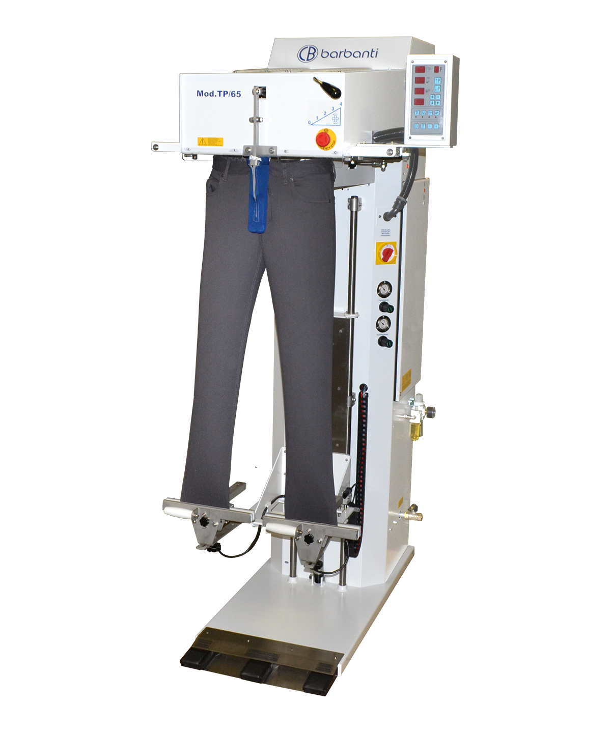 The finishing cycle and the functions are automated, managed via computer, with the possibility of using the carriage with further tension to re-shape hard garments, such as jeans or, on the contrary, with anti-stretch function for delicate garments, which must not deform. Programs and piece counter settings possible.